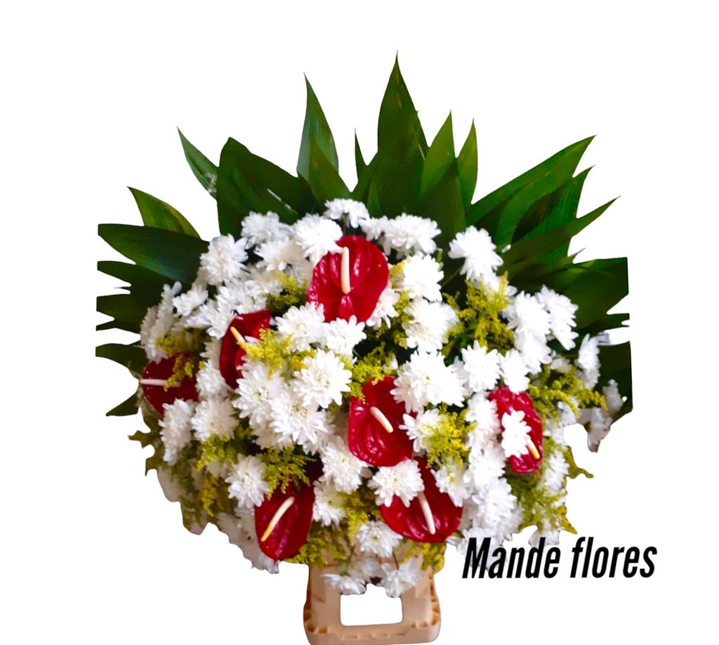 Arranjo para velório. Arranjo pra lateral de corpo na capela. Arranjo com flores mistas para velório. Comprar arranjo para velório na Floricultura Mande Flore 41 98779 0597. Sem taxa de entrega em Curitiba e região metropolitana.