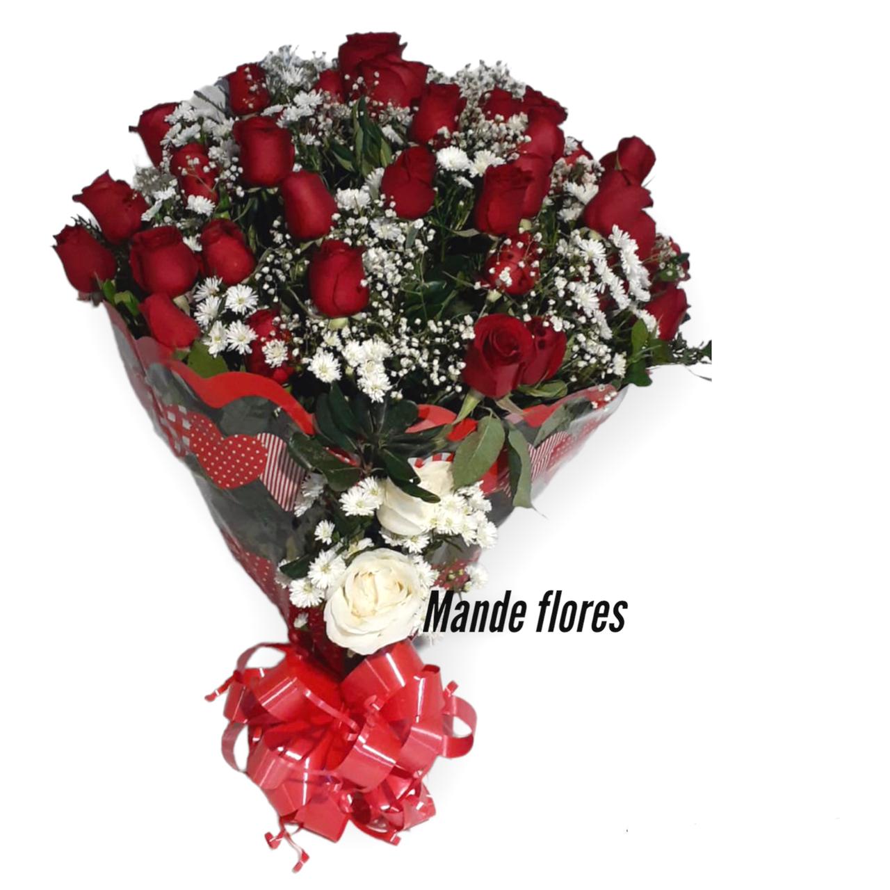 Buquê com 24 rosas especial. Comprar buquê com 24 rosas barato na Floricultura Mande Flores São José dos Pinhais.