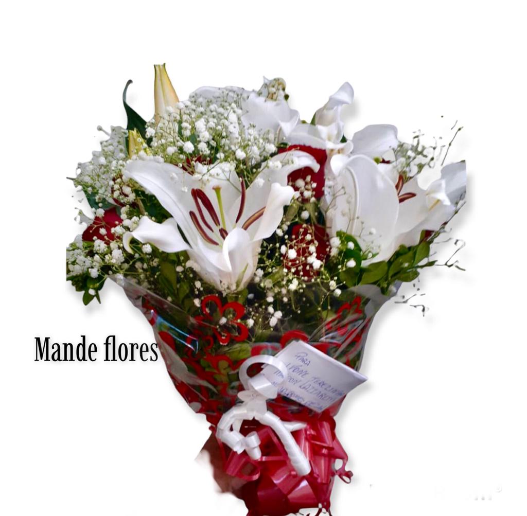 Buque de rosas vermelhas com lirios. Comprar este lindo buque com lirios na Floricultura Mande Flores com entrega rápida para Curitiba e região