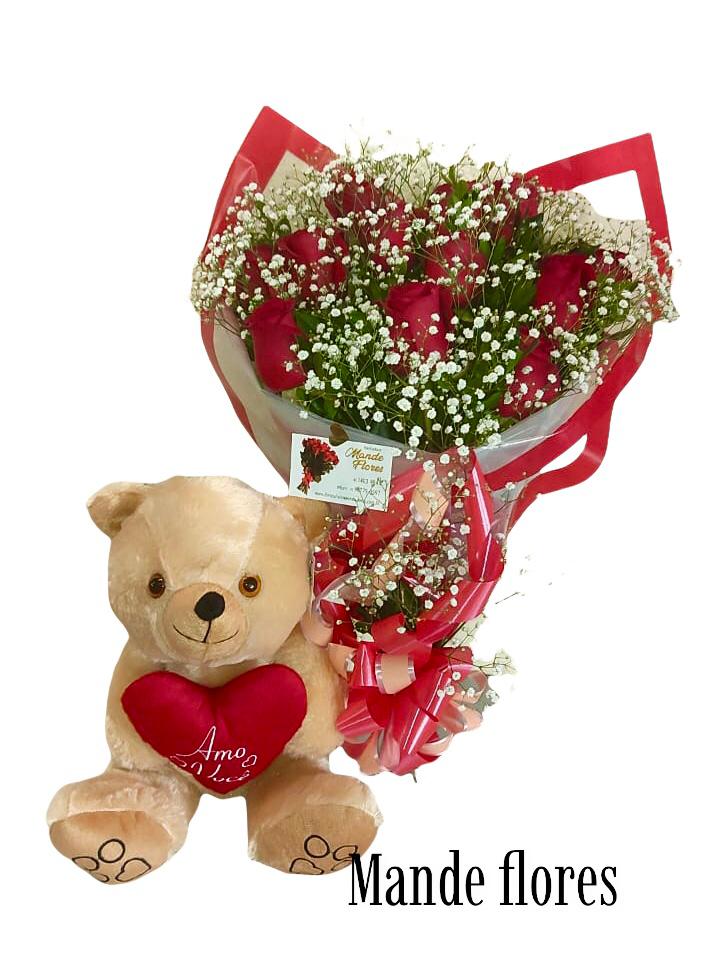 Buquê com rosas e ursinho na Mande Flores Curitiba. Faça sua encomenda para São José dos Pinhais, Piraquara, Fazenda Rio Grande, Pinhais, Piraquara. Faça sua encomenda na Mande Flores São José dos Pinhais.