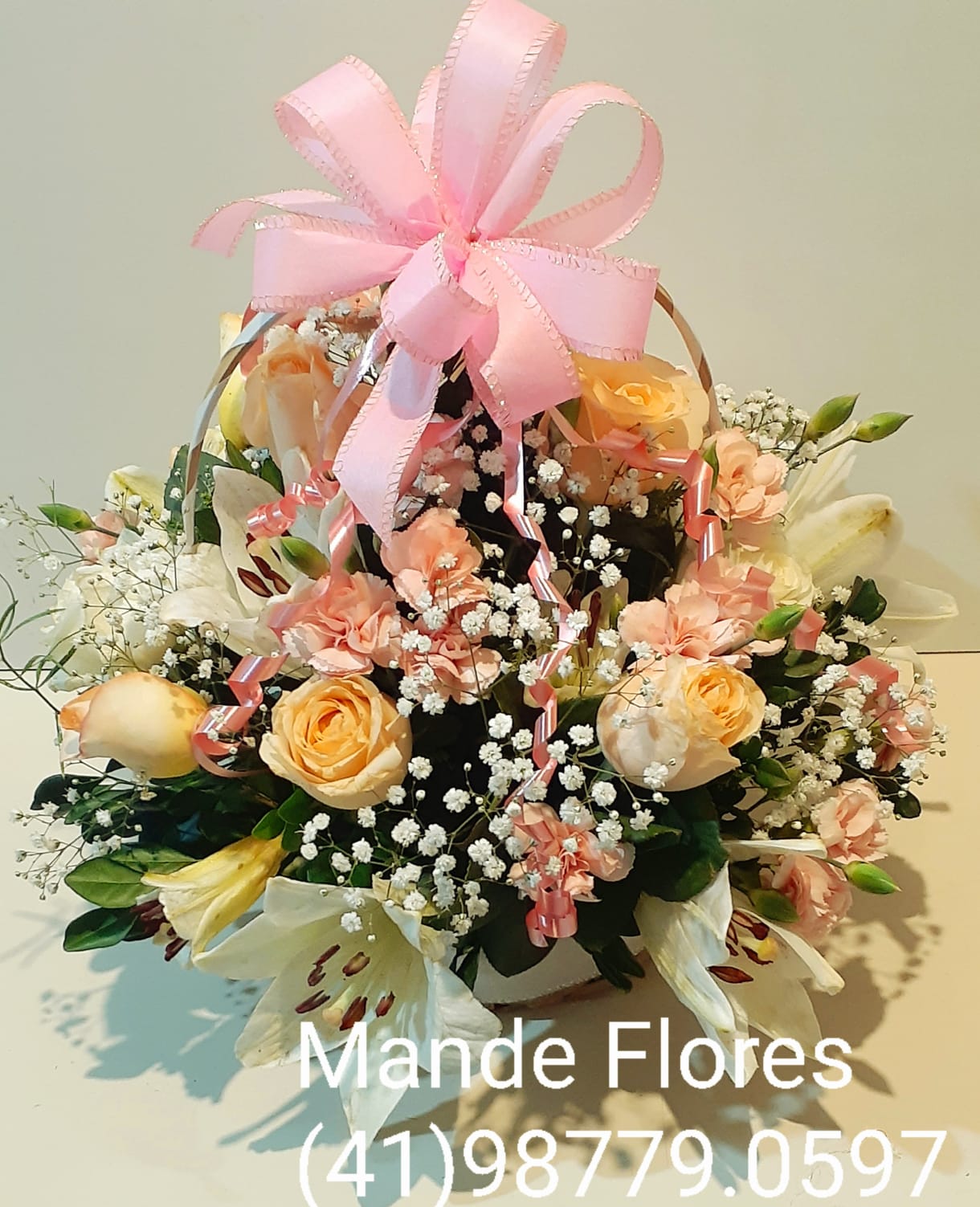 Cestinha de rosas. Variedades no tom degrade champanhe.