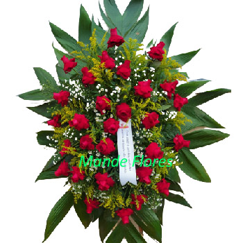 Coroa pra velório disponível para entrega. Coroa com rosas vermelhas entregamos nos velórios em Curitiba. A Floricultura MANDE FLORES oferece os melhores preços. Entregamos coroa de flores no cemitério de Fazenda Rio Grande.