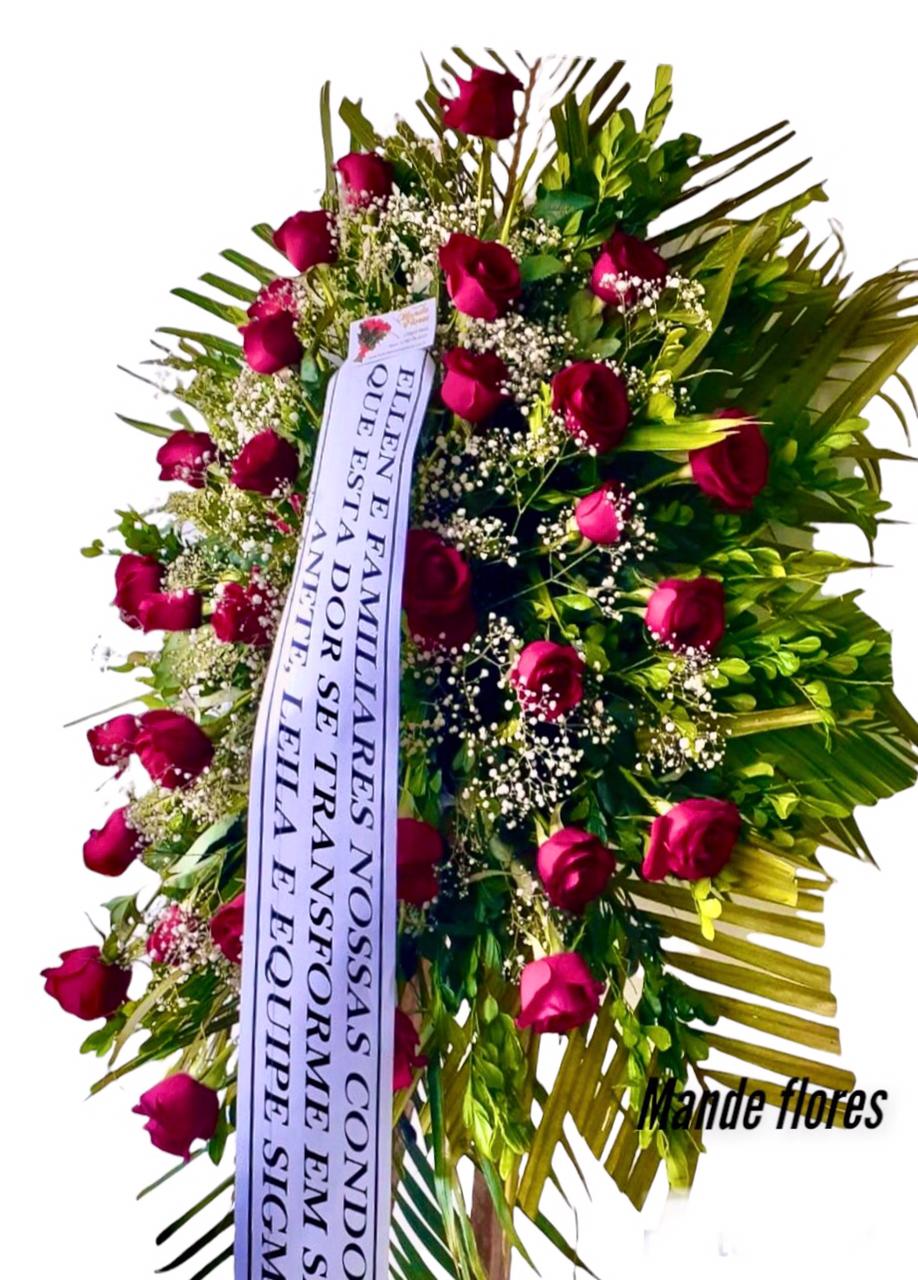 Coroa de flores pra velório com rosas vermelhas.