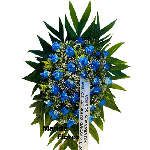 Coroa de flores azuis. Escolha, compre e pague com cartão de crédito. Compre coroa de flores por aqui Watts 41 98779 0597. Escolha o modelo de sua preferência pelo nosso site. Nosso atendimento será como estar presente em nossa casa. Pagamento via Pix ou cartão de crédito, enviamos a maquininha no local. Aceitamos sua encomenda de onde estiver no Brasil e no mundo.