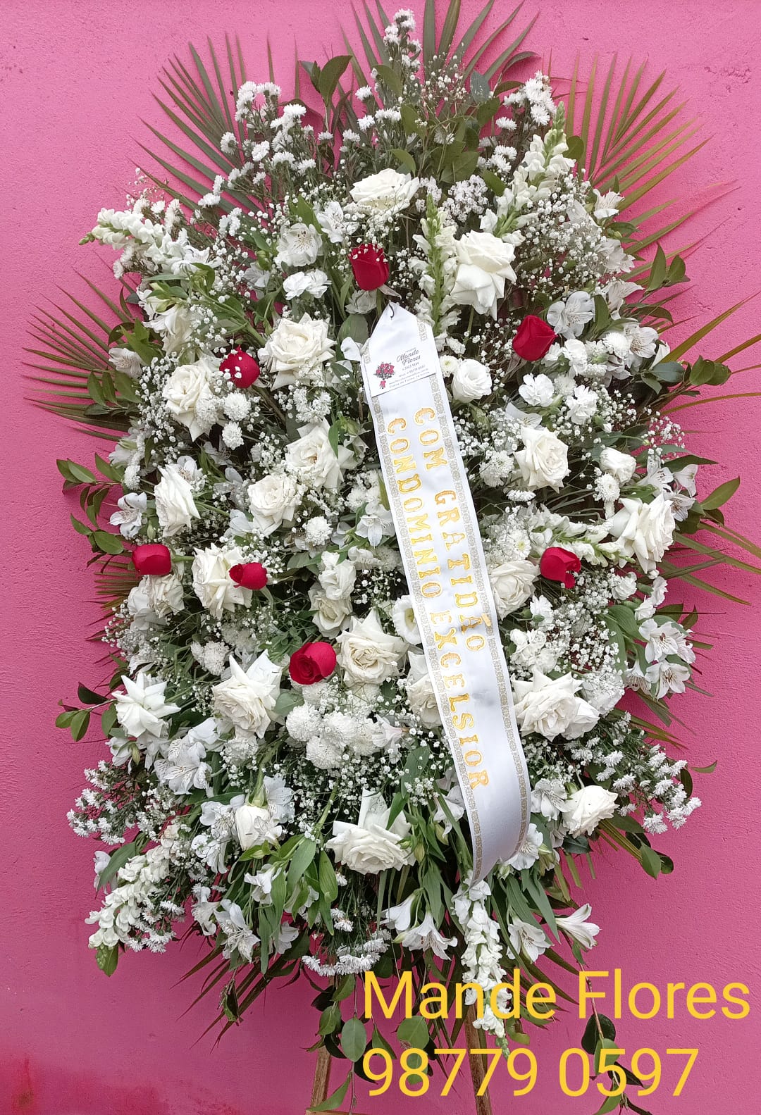 Modelo especial de coroa para velório. Modelo perfeito de expressar carinho e homenagem para um ente querido. Linda composição de flores com rosas.