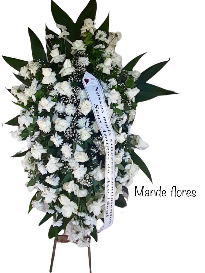 Coroa de flores branca para velório. Entregamos coroas de flores nos cemitérios de São José dos Pinhais. Cemitério Pedro Fuss. Capela Berti. Crematório Memorial da Vida. Crematório Vaticano. Capela Do Vaticano.