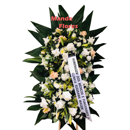 Coroa fúnebre branca para entrega Pelo nosso site escolha, compre e pague com cartão de crédito. Por maquineta enviamos no local junto com a coroa. Você que está no exterior a Mande Flores atende sua encomenda.