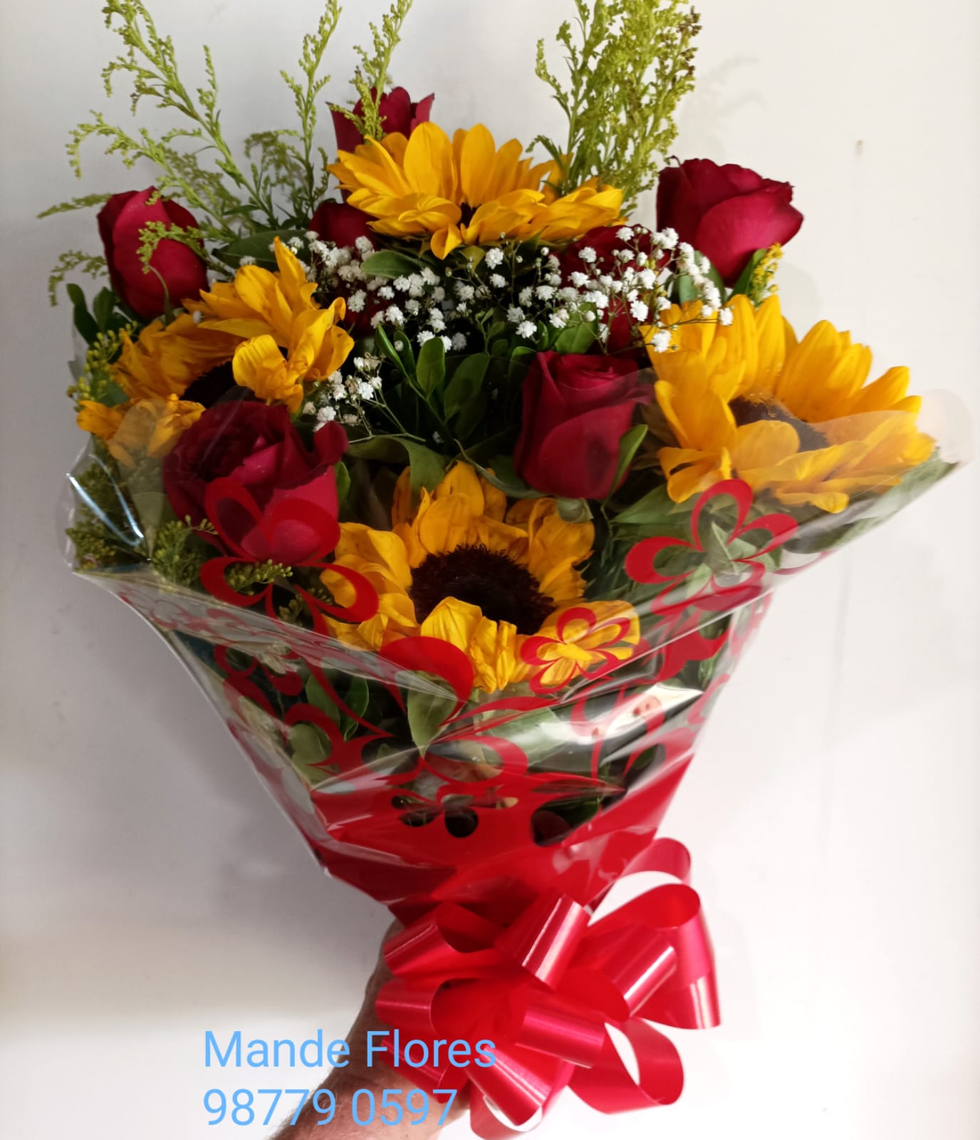 Girassóis da felicidade com amor das rosas. Eternize com amor e carinho enviando um arranjo de girassóis para quem você mais ama. Escolha e compre um lindo arranjo destas flores aqui pelo Watts 98779 0597. Compre e pague com cartão de crédito ou pix ou ainda direto pelo site.