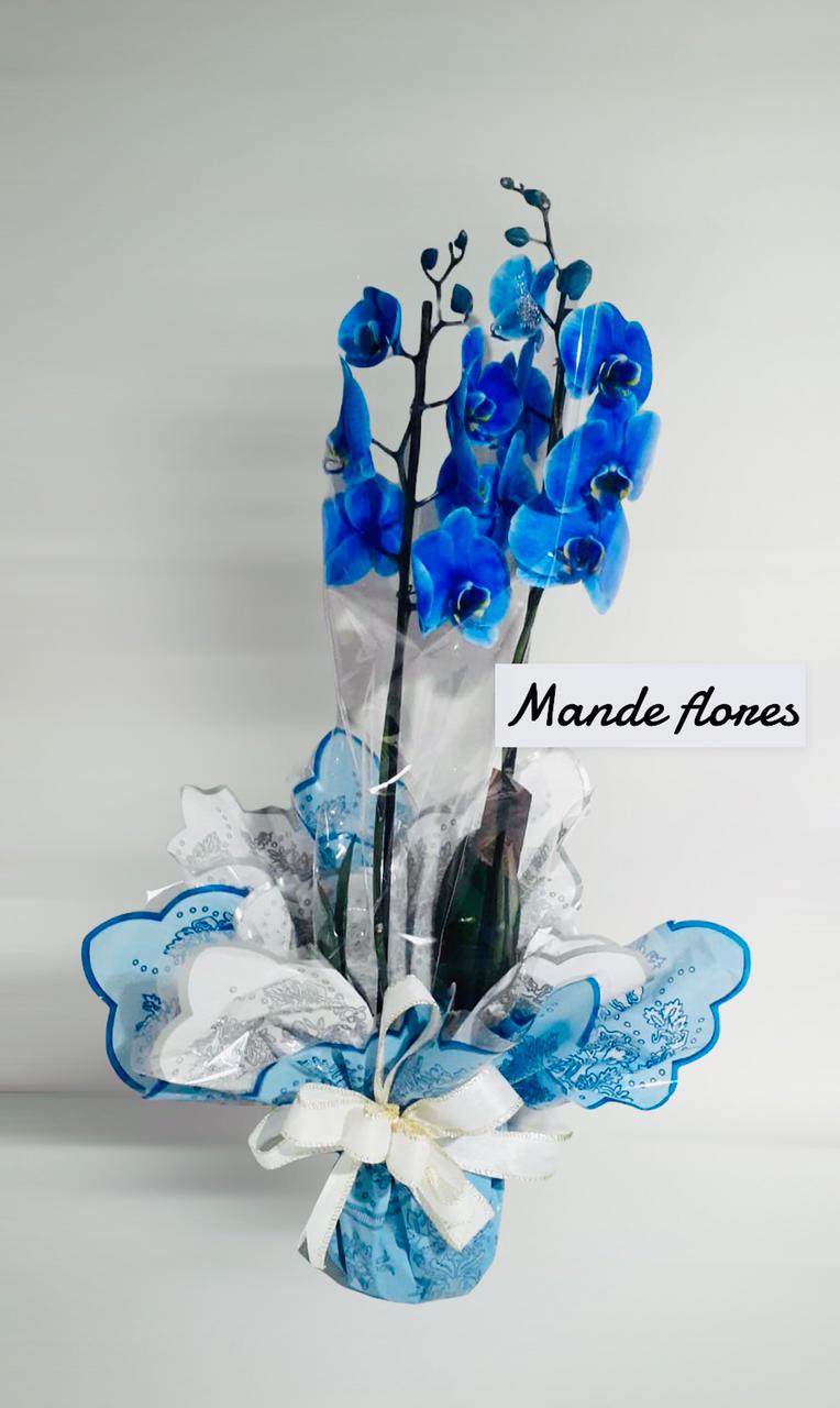 Orquídea azul plantada decorada para presente com entrega a domicilio em todos os bairros de Curitiba e cidades próximas. Floricultura Mande Flores tem as mais lindas e variadas cores de orquídeas plantadas.