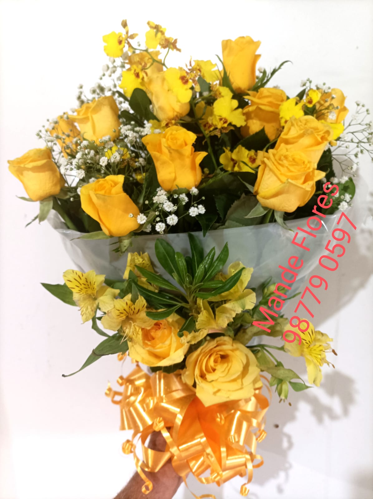 Rosas amarelas, amizade, esperança e prosperidade. Buquê perfeito para demonstração de gratidão. Representatividade, do ouro. Especial presentear para formaturas, formandos em diferentes áreas. Inauguração comercial, iniciação de negócios.