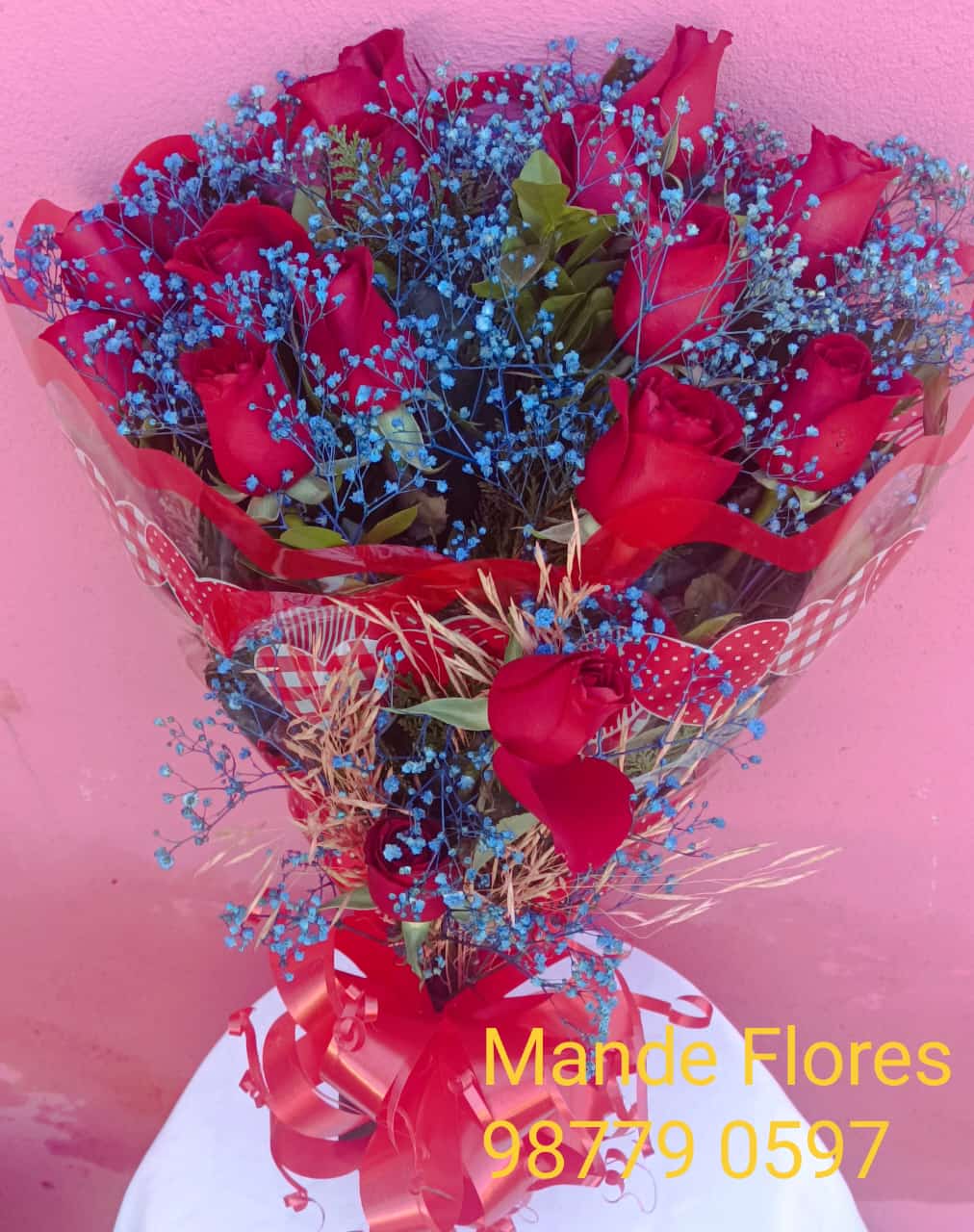 Arranjo esperto para o mozão com rosas vermelhas e mosquitinho tingido. Bom presentear seus amores com flores, seu marido, pai, irmãos.